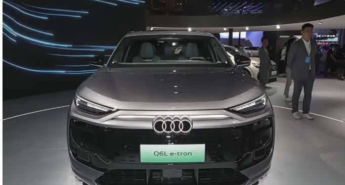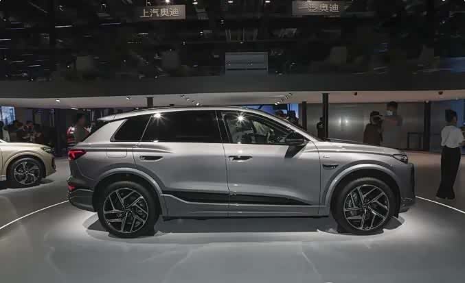 先说说外观,奥迪Q6L e-tron实车之前在上海车展就露过面了。它的前脸设计基本延续了海外版的风格,封闭式格栅搭配点阵式结构装饰,辨识度相当高,远远一看就知道是奥迪家的车。大灯组用了分体式设计,这可是现在新能源车型常见的潮流元素,时尚又前卫。
