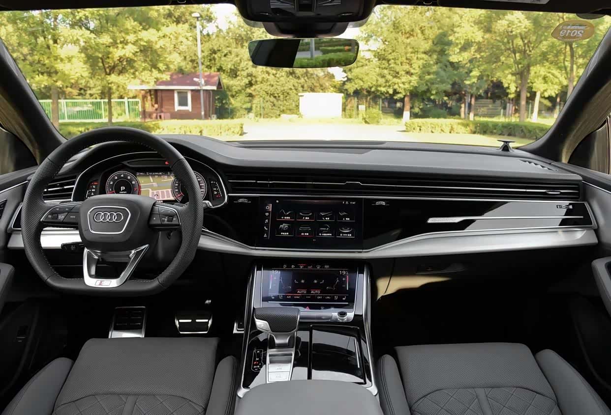从车内来看,2019款55 TFSI尊享动感型内饰主要以黑灰双色为主,风格较为豪华,搭配银色与银色饰条,中控台搭配软性材质的内饰材质,并配备多色氛围灯,一定程度上提升了车内的品质感,并配备了HUD抬头数字显示、车道偏离预警系统、主动刹车系统等。配备8.6和10.1英寸液晶中控屏。
