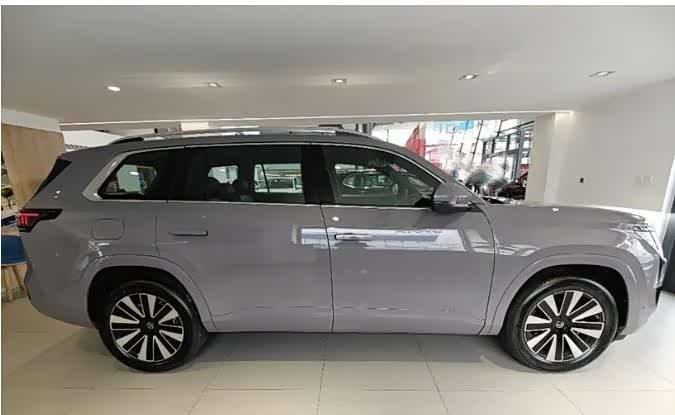车身侧面,虽然全新途昂PRO采用了更为饱满的身形布局,并加大了D柱倾角,但整体视觉效果依然十分宽大且饱满。隐藏式门把手的设计,让新车颇有些新能源车型的味道,同时也提升了侧面的科技感。