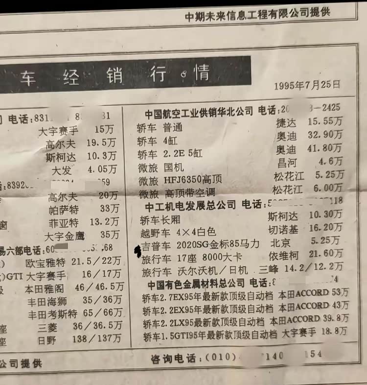 “国产车不崛起,外国车价格得上天”,这句话并非夸大其词,而是真实存在,如果你不相信,那么就看看1995年的报纸上关于汽车的价格信息,大众高尔夫卖20万,大众帕萨特卖33万,本田雅阁卖46万,这可是1995年啊,当时的人收入非常低,对于绝大部分人来说,不是说买不买得起汽车的问题,而是想都不敢想的问题。1995年帕萨特和雅阁,别说当时卖三四十万,30年后的今天,三四十万的车,销量同样不高,很多人同样买不起,全球汽车市场核心销量都来自20万以内的车型。