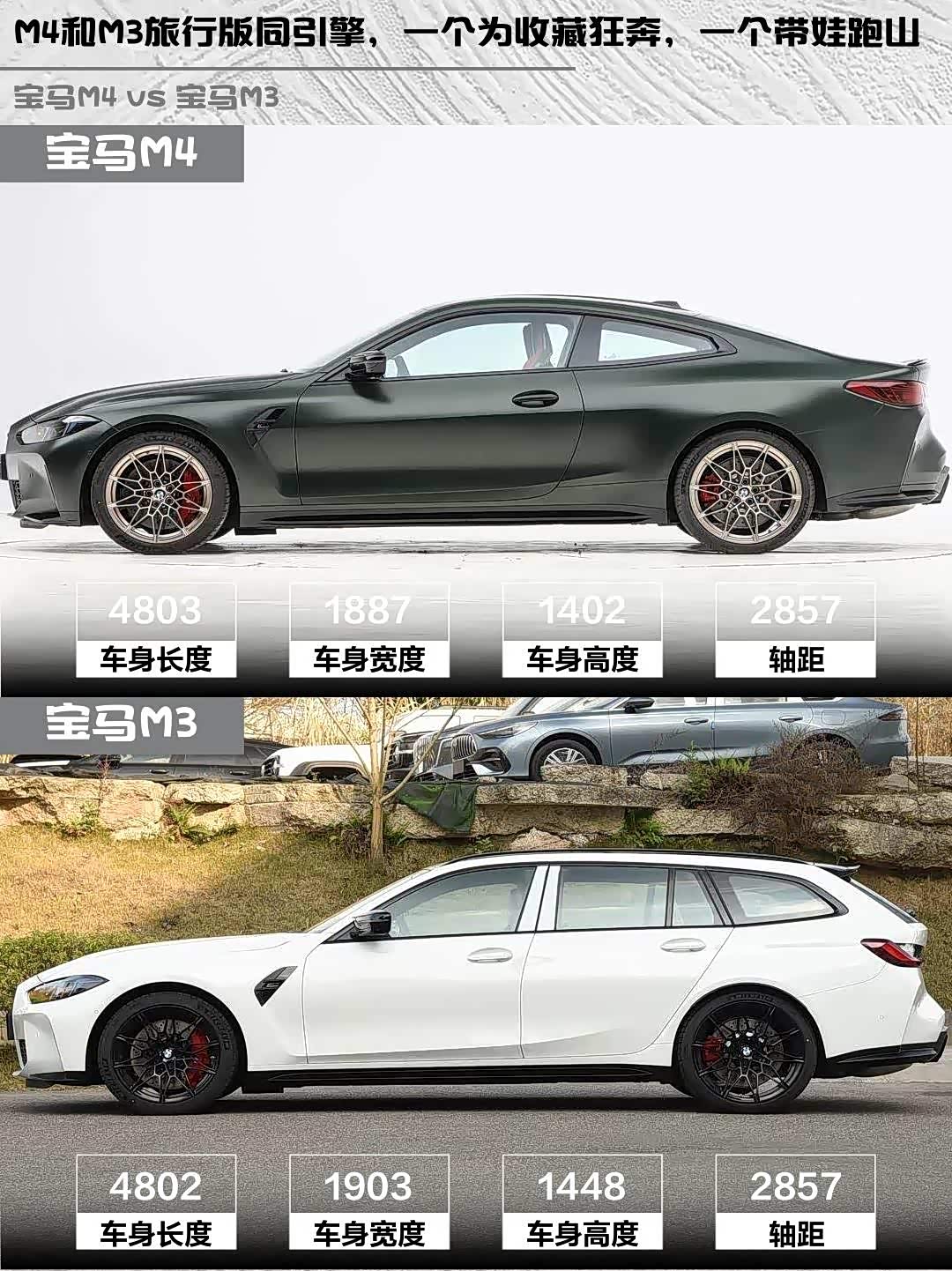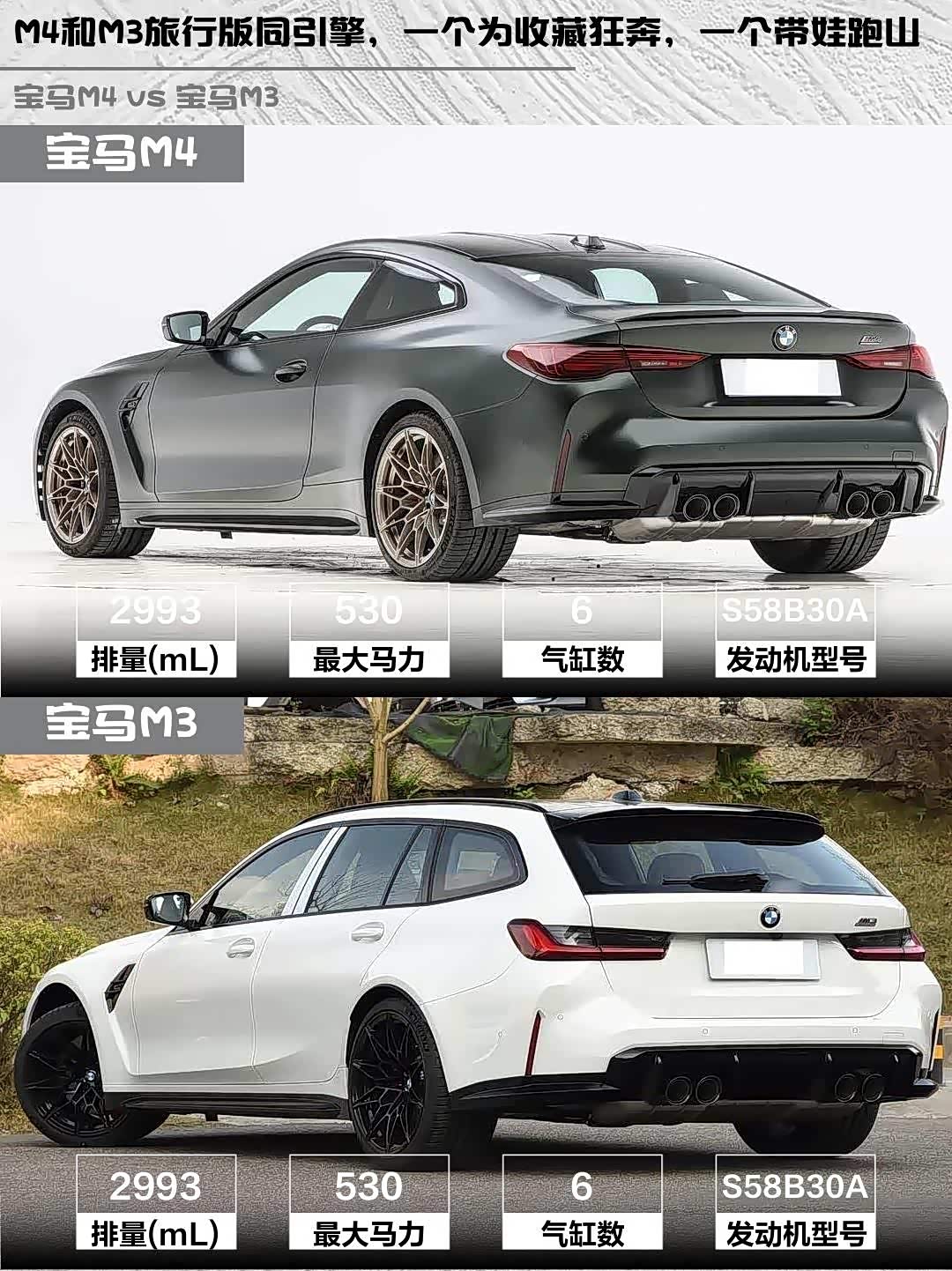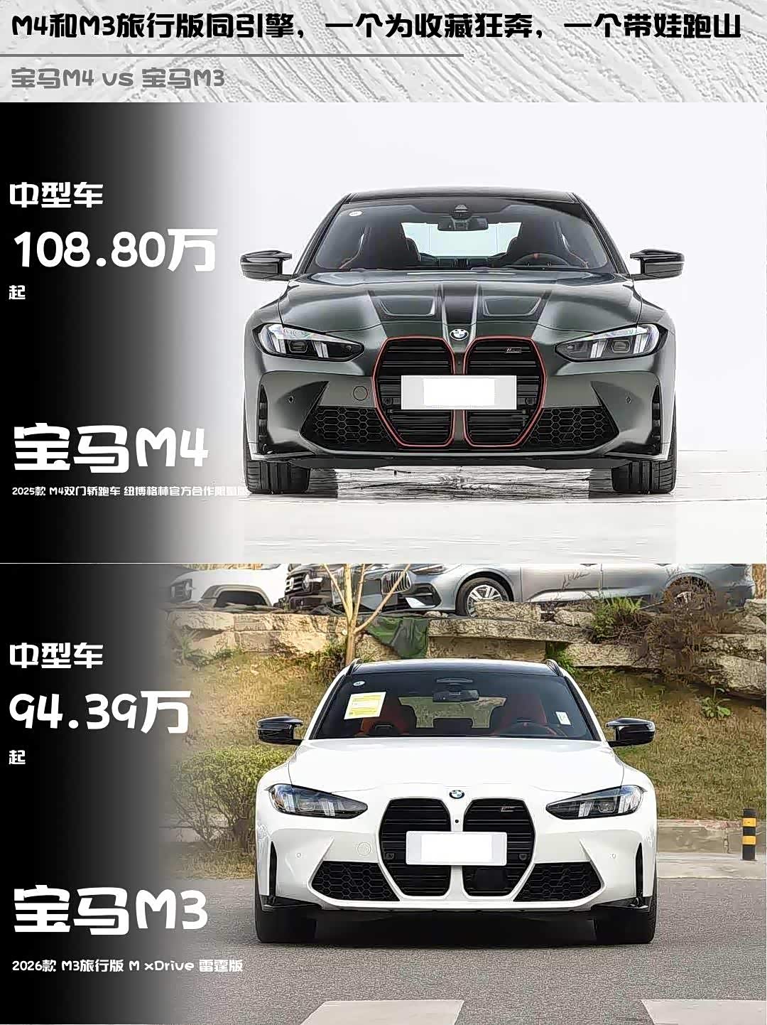 当性能控遇上实用派, 宝马M4(参数|询价)双门轿跑车纽博格林限量版和M3旅行版雷霆版该怎么选?🤔 作为两款同根同源的性能猛兽,它们用截然不同的方式诠释了M Power的魅力,今天就来场硬核对比!