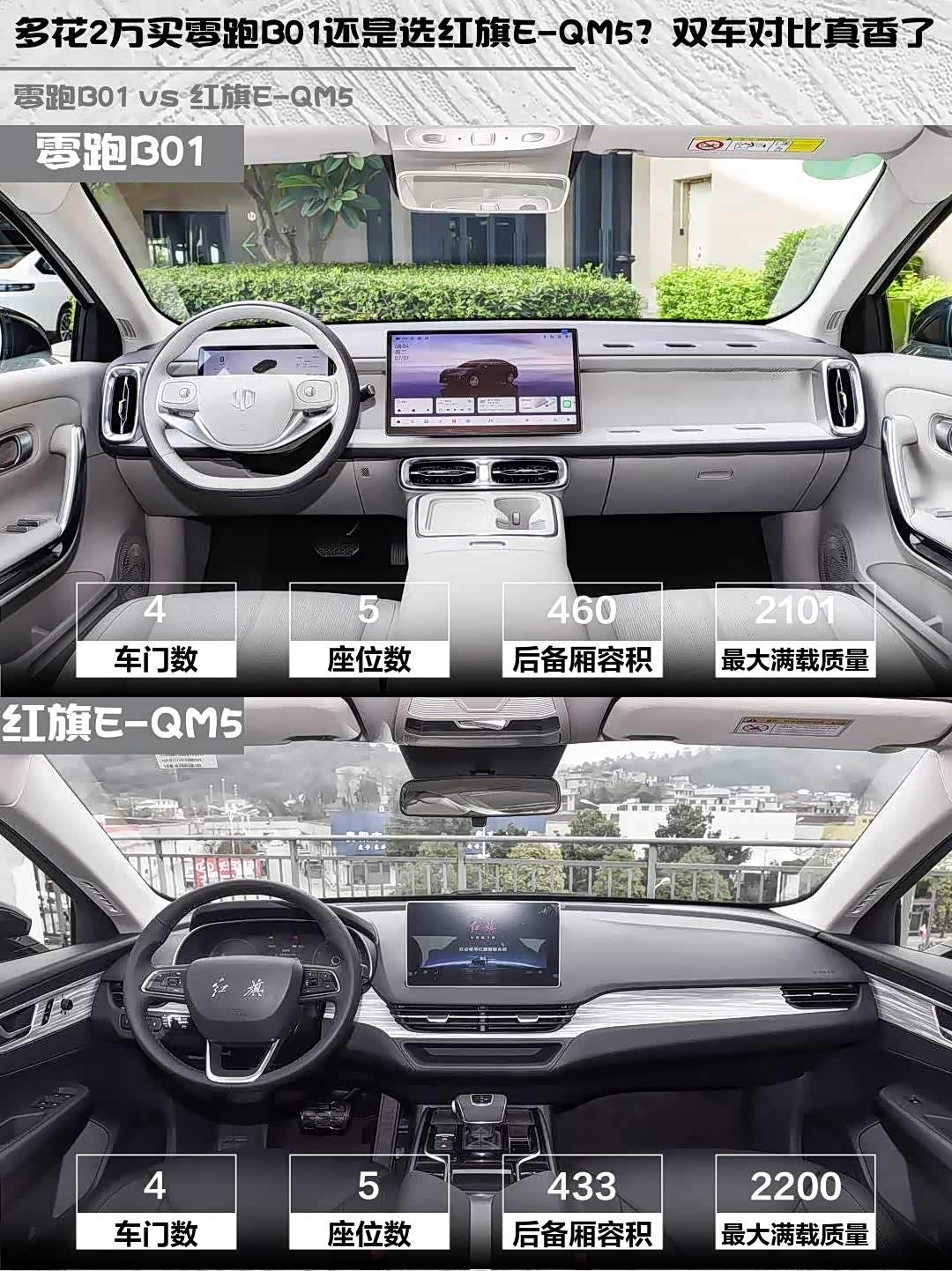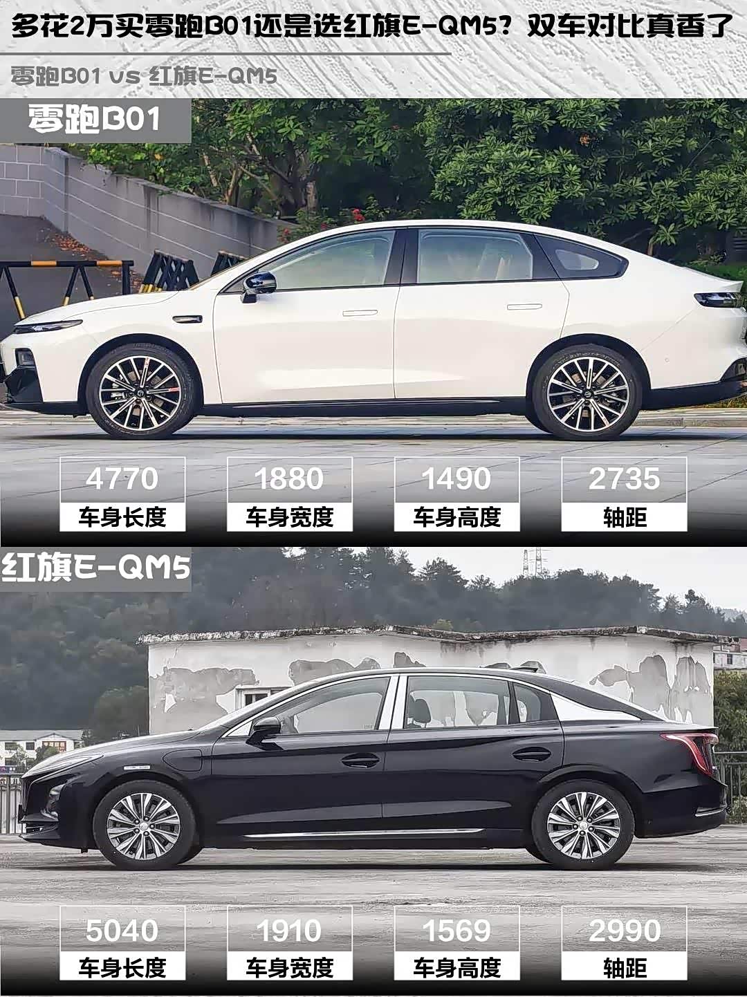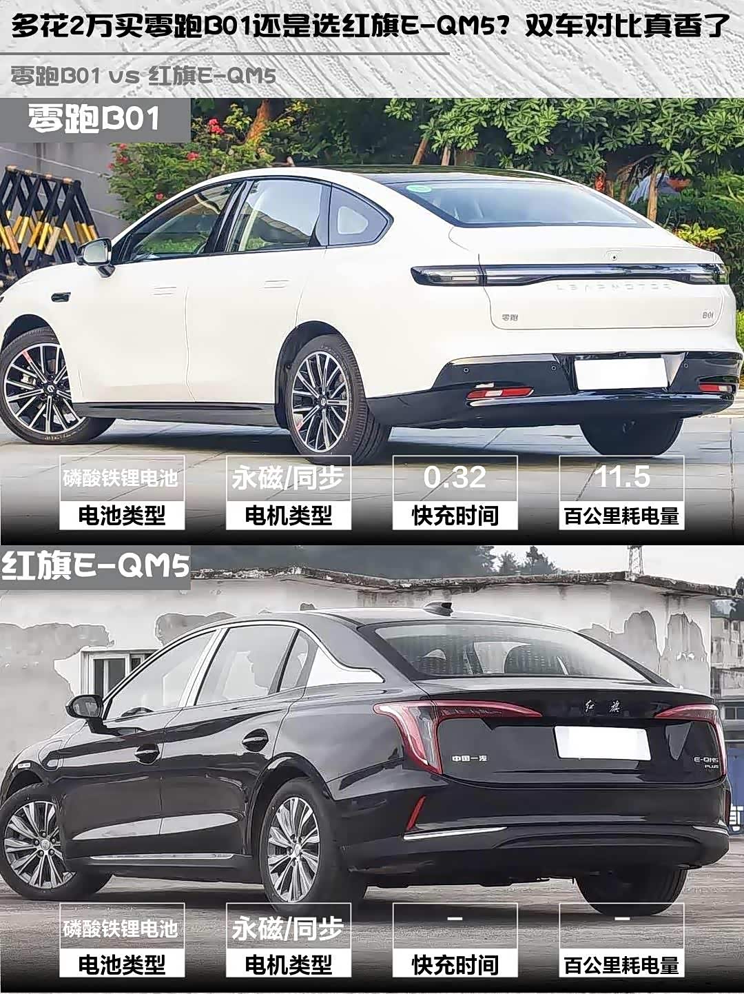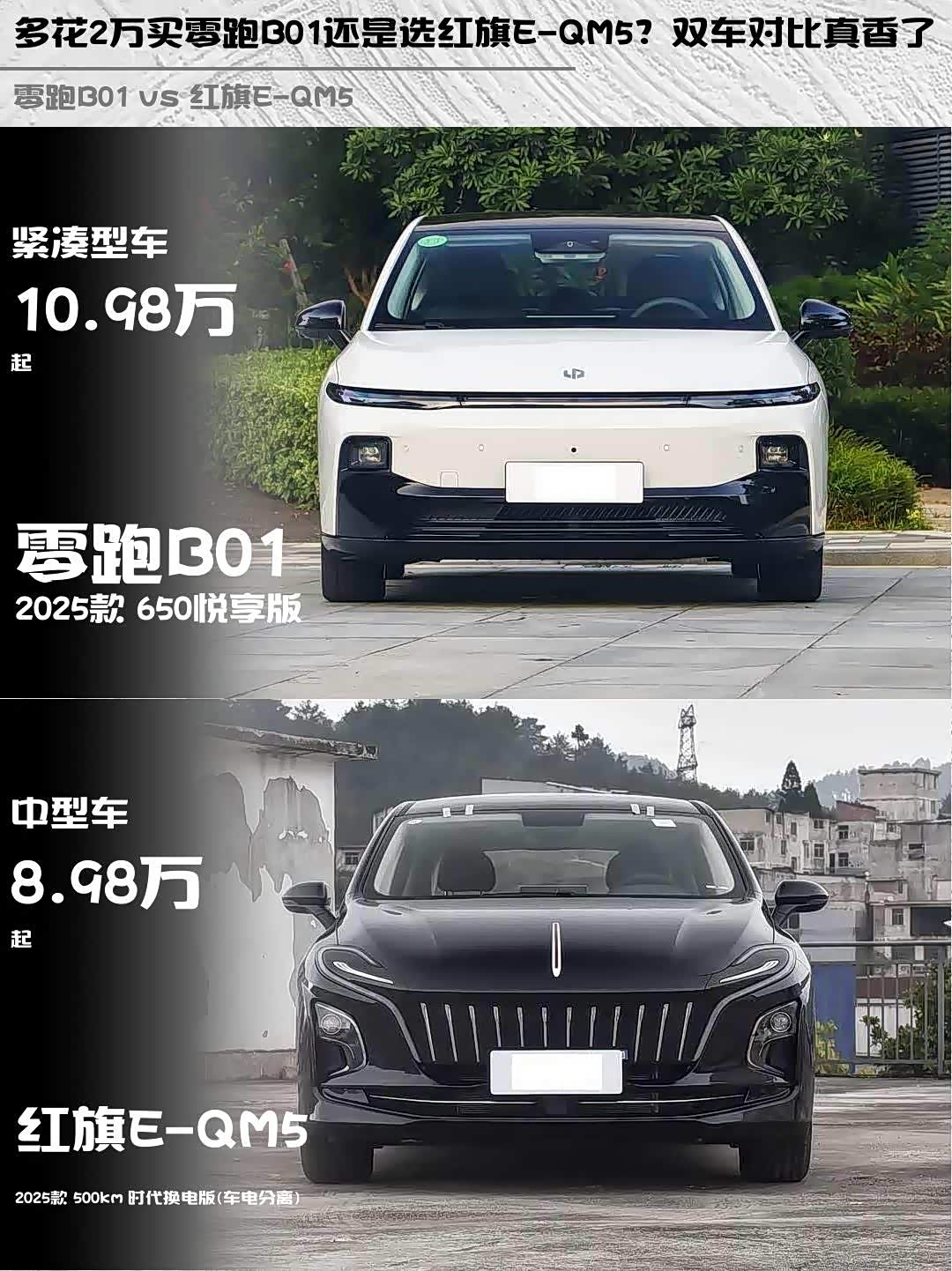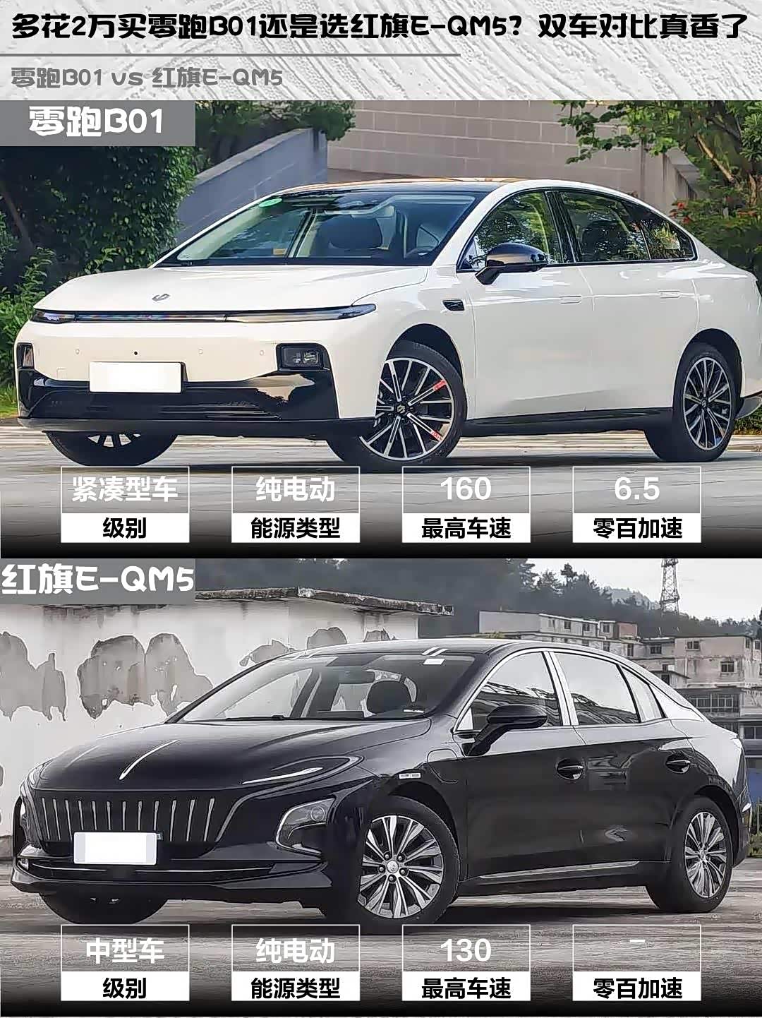 最近在选纯电家轿的朋友看过来!10万级性价比之战,零跑B01 2025款 650悦享版和 红旗E-QM5(参数|询价) 2025款 500km时代换电版到底怎么选?实测对比干货奉上👇