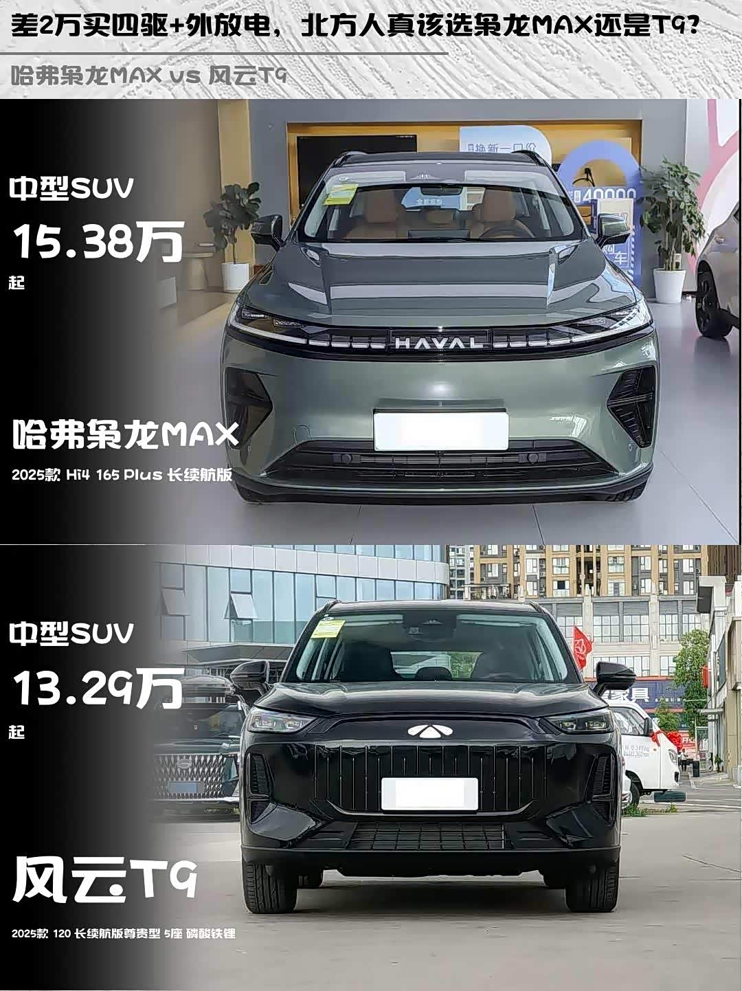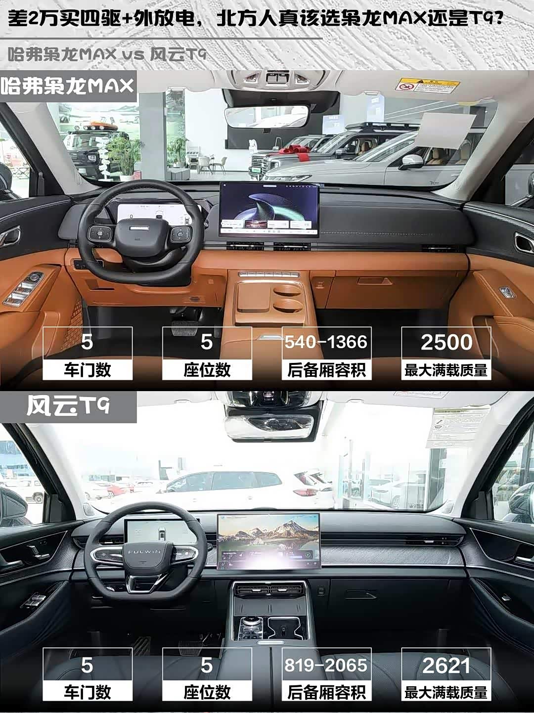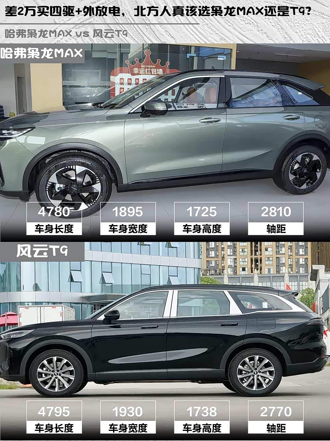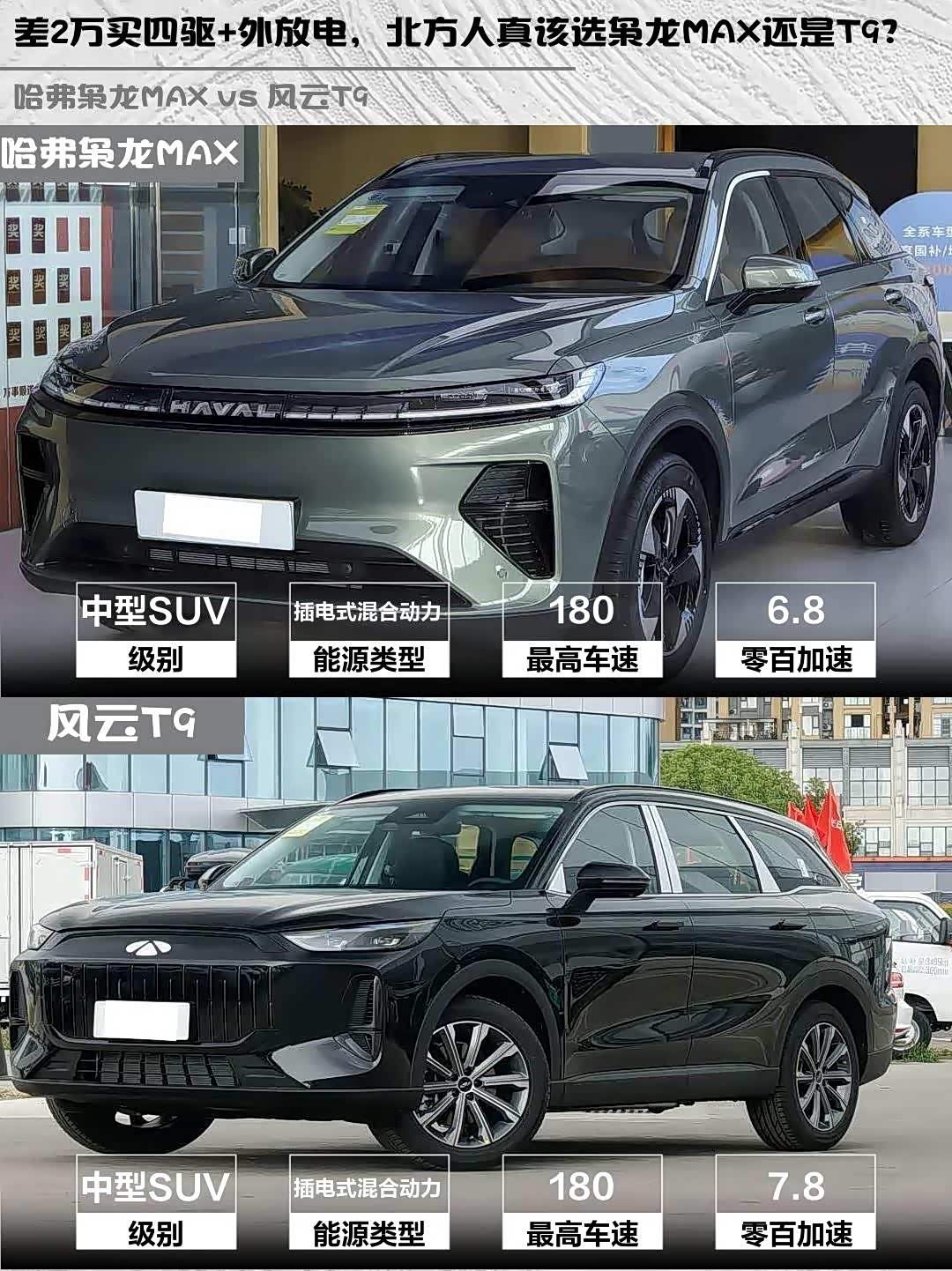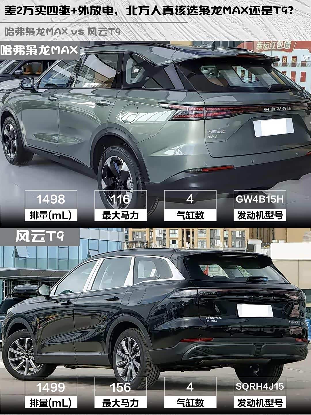 最近在选混动SUV的朋友看过来!今天深度对比两款热门车型—— 哈弗枭龙MAX(参数|询价) 2025款 Hi4 165 Plus 长续航版和风云T9 2025款 120 长续航版尊贵型,看完这篇你就知道哪款更适合你!🔥