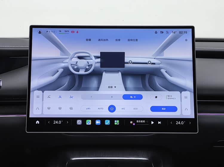 车内屏幕系统由16.1英寸的3K中控屏、大尺寸的抬头显示HUD、可翻转的仪表屏以及可拓展的后排屏幕等构成,形成了多维度的信息交互界面。内饰设计增加了新的配色方案,并对副仪表台和方向盘的造型进行了更新,门板和座椅的缝线也采用了新的设计语言。双分区可调光的天幕,让车内光环境控制更加自由。