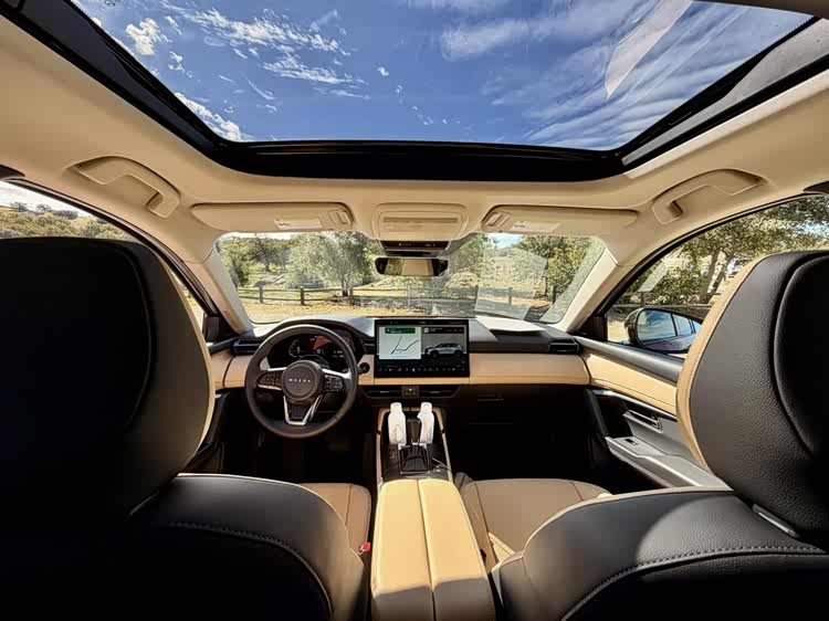 内饰采用了新的设计,比较简洁,采用了两排座椅,提供15.6英寸的大尺寸悬浮式中控屏幕,还采用了10.25英寸的液晶仪表,搭载全景天窗,座椅通风,360度全景等多项配置。