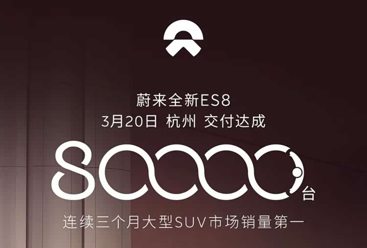纪录再次刷新!3月20日,蔚来公司对外宣布:全新 ES8(参数|询价)在杭州完成第8万辆新车交付。要知道,当天仅仅只是该车于去年9月21日开启交付以来的第181天。不到六个月时间,全新ES8已在国内大型SUV销量排行榜实现“三连霸”,“四连冠”亦将收入囊中。