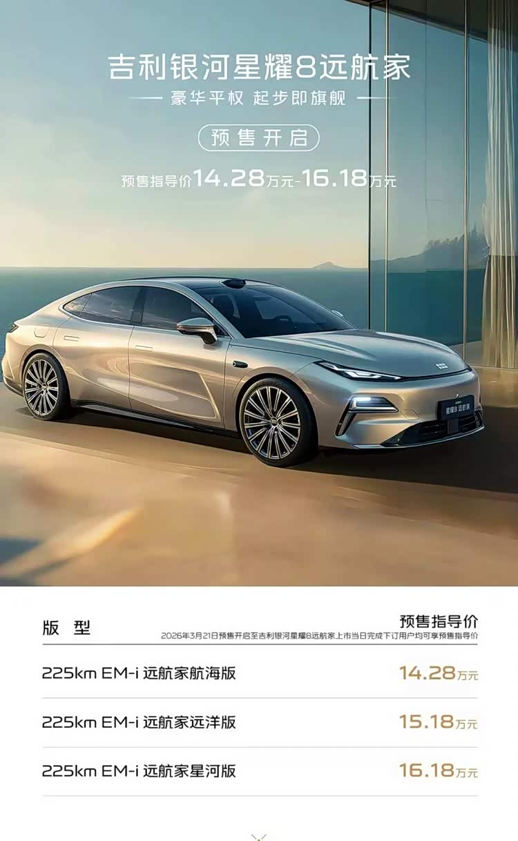 吉利银河星耀8远航家预售开启,新增丹霞矿/日照金配色,能火吗?