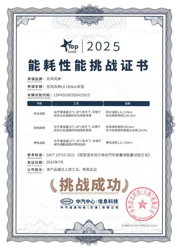 同时,丰配友认为一台车的续航能力要足够强,这能减少跨城出行的补能频次,让行程更从容。风神L8在续航方面也表现十分优秀,中汽中心权威实测综合续航可达2245km,更是完美匹配了马拉松式的极致耐力,就算从从高原训练基地跨省到赛场,一次满油满电就能轻松覆盖,让丰配友在赶赛程、跨城训练时都格外从容。对普通家庭用户而言,这套动力系统兼顾了强劲性能与燃油经济性,中汽中心实测综合油耗仅2.4L/100km,日常通勤省油省心,长途出行从容不迫,全面满足家用全场景出行需求。