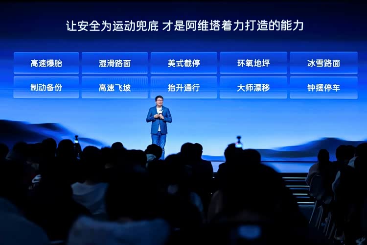 具体性能上,太行分布式电驱工况效率92.8%,电驱功率密度达4.52kW/kg。其中双电机版在69L体积下实现502kW总功率,体积功率密度达到7.28kW/L;三电机四驱版总功率712kW,零百加速进入2s级。阿维塔公布的测试视频显示,即便车辆在220km/h时速下遭遇四轮连续爆胎,该系统仍能确保车身姿态稳定。