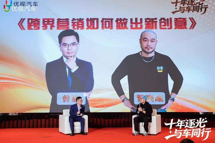 在跨界交流部分,优视汽车传媒创始人曾湘与笑果文化创始人贺晓曦,针对新时代内容创新与跨界营销的结合方式交换看法。贺晓曦认为,跨界合作的核心差异在于表达重点、方式与理解层面的不同,脱口秀作为通用表达形式具备广泛适配性,汽车自媒体则需要在垂直领域维护稳定的用户群体。同时贺晓曦提出,内容与流量的核心衡量标准是影响力,内容创作者需要关注长期价值输出,打造稳定的内容品牌。