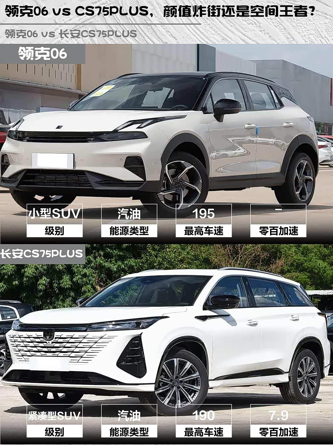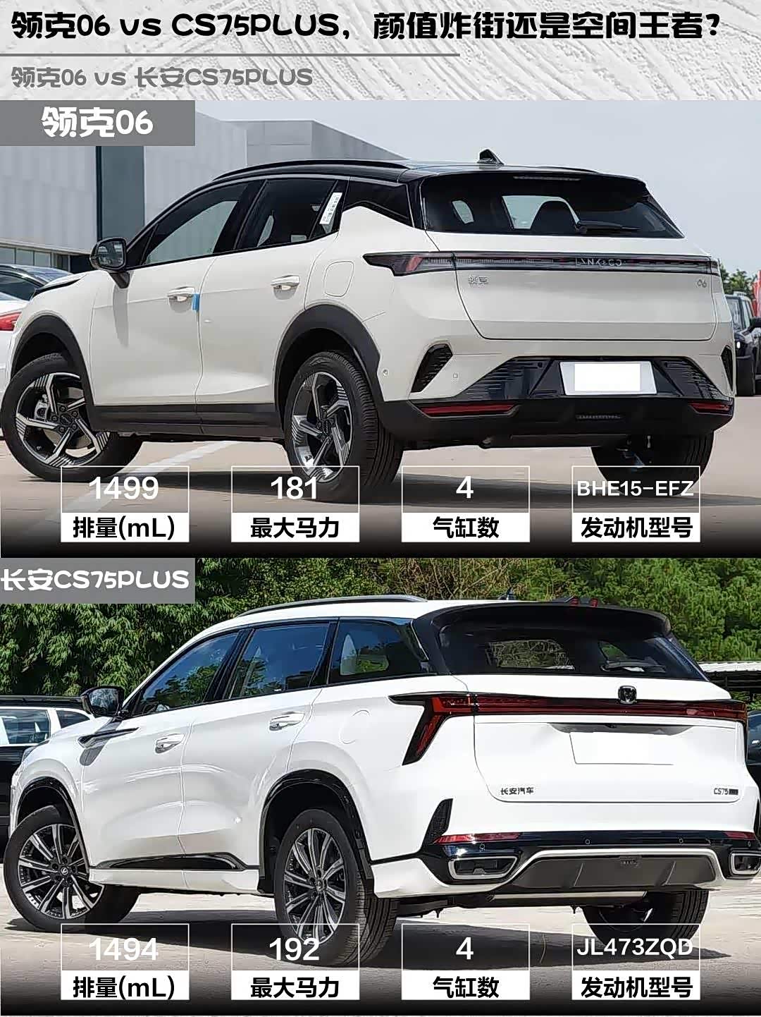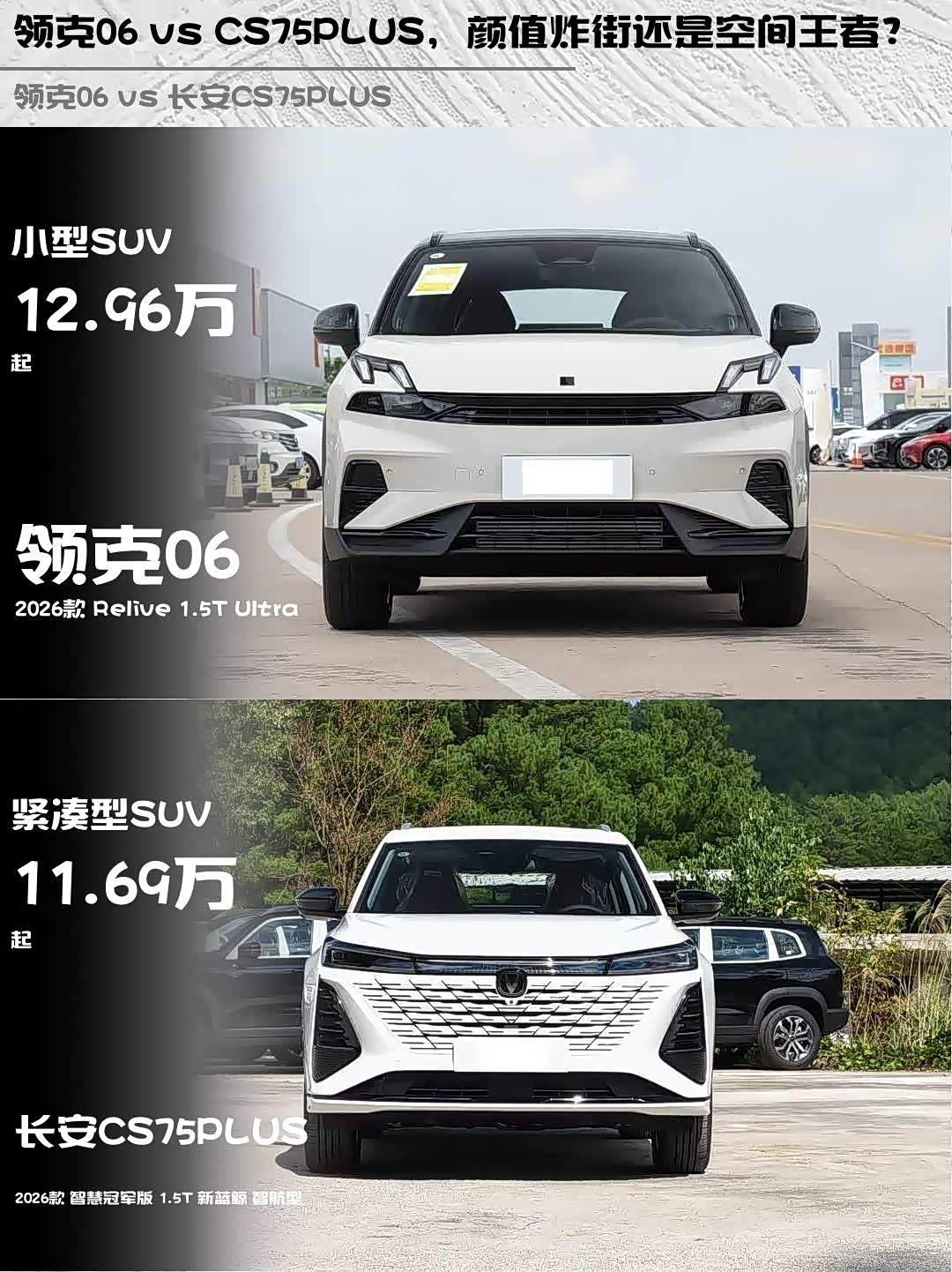 最近在选15万级SUV的朋友看过来!领克06 2026款 Relive 1.5T Ultra和 长安CS75PLUS(参数|询价) 2026款 智慧冠军版 1.5T 新蓝鲸 智航型这两款热门车,我深度对比后发现差异点太有意思了🔥