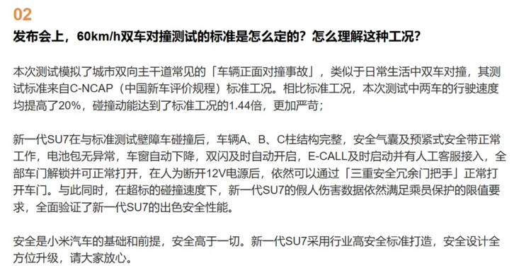 与此同时,小米汽车官方则通过“答网友问”栏目,对碰撞测试本身的技术细节进行了补充说明。