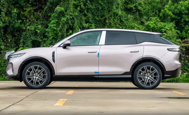 侧身设计同样可圈可点:B 柱配备银色装饰条点缀,平直的车顶线条不仅提升了车内头部空间,更赋予车辆沉稳大气的视觉感受;搭配运动风格轮毂,让整车的动感气息愈发浓郁。尾部造型饱满厚实,贯穿式尾灯组点亮后辨识度极高,大尺寸车顶扰流板与后包围处夸张的扩散器装饰相得益彰,完美契合当下年轻消费者的审美偏好。