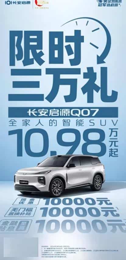 家用SUV不知怎么选?长安启源Q07 限时三万礼直接砸向市场!性价比直接碾压同级!
