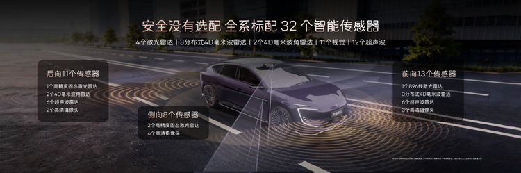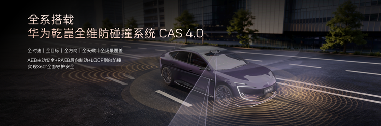 车辆同时搭载5颗华为乾崑4D毫米波雷达,全面提升系统检测性能与可靠性。华为乾崑全维防碰撞系统CAS 4.0实现全时速、全目标、全方向、全天候、全场景防护,为用户提供全方位的安全守护。