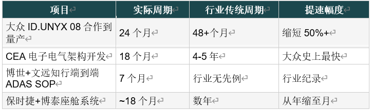 市场早已给出了答案。大众用7亿美元投资小鹏,ID.UNYX 08从合作到下线仅24个月;Stelantis将零跑车型引入西班牙工厂本地化生产,并考虑将零跑技术嵌入菲亚特和标致;保时捷首次将座舱开发权交给中国团队和中国供应商博泰;博世靠文远知行的算法7个月完成量产SOP;宝马、奔驰、奥迪全部牵手中国智驾公司Momenta。
