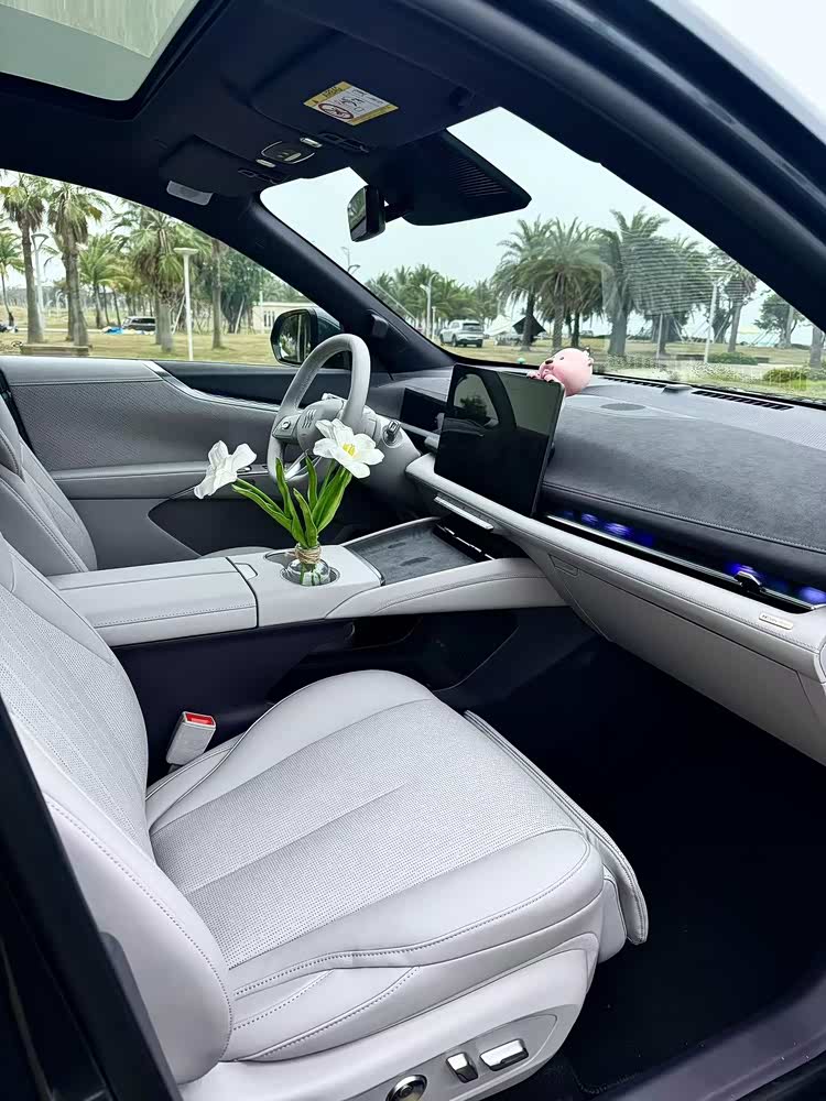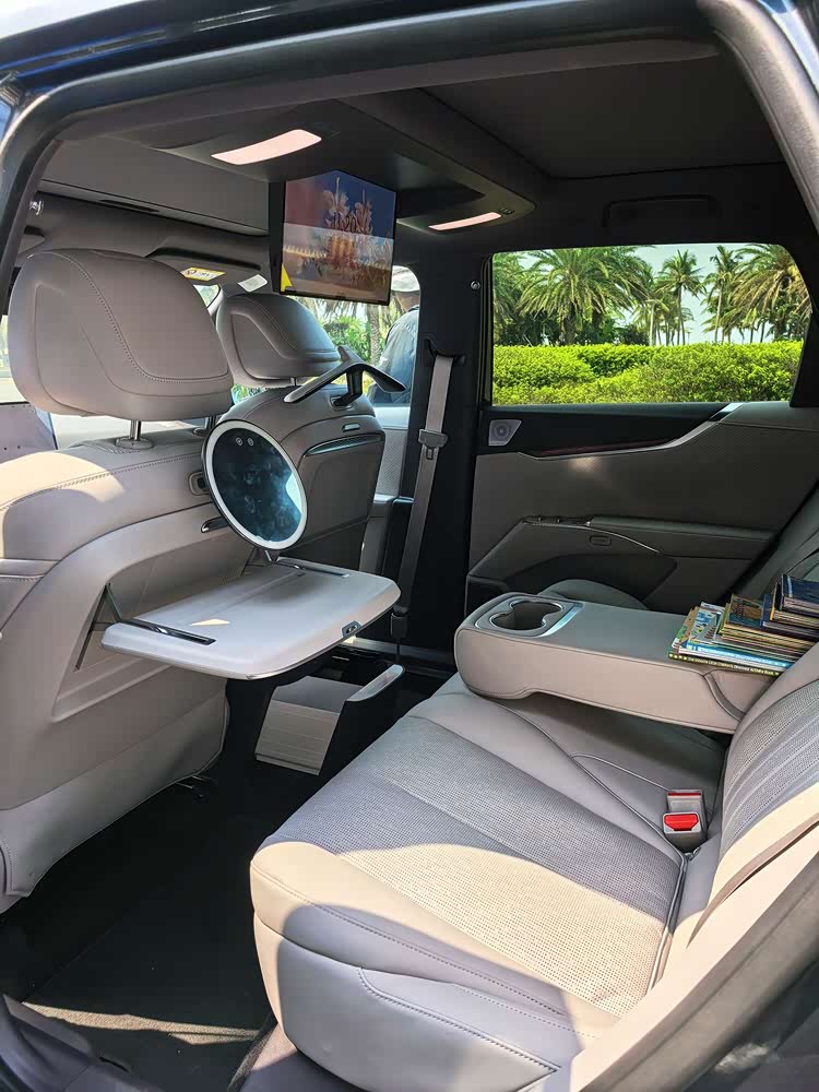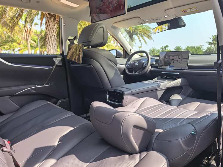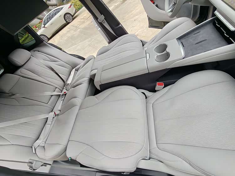 车内采用大五座布局,前排副驾配备伊姆斯零重力躺椅,支持电动腿托、加热/通风/按摩等。而二排座椅也支持靠背115°-125°电调以及加热/通风功能,再配合15.6英寸吸顶娱乐屏、智能冷暖冰箱、双折叠小桌板+多功能拓展接口、7.1.4杜比全景声+20扬音响、香氛系统等,乘坐舒适性不言而喻。另外前排座椅靠背可放平与后排座椅相连,而后排座椅放倒后也能进一步提升实用空间。