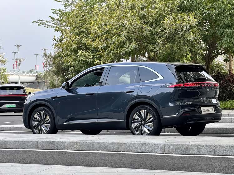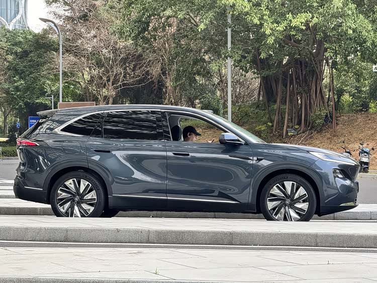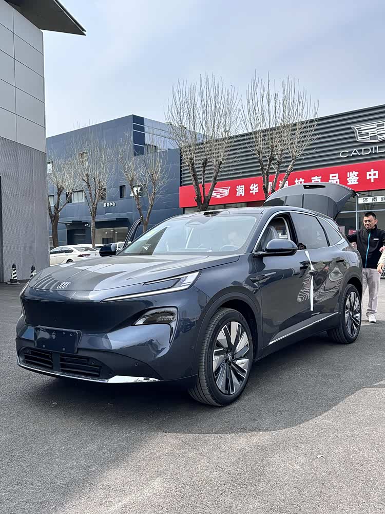 车身尺寸长宽高分别为4850/1910/1676mm,轴距2850mm,大过昂科威Plus,也要大过同级比亚迪宋L/海狮06DM-i、尚界H5等。车身侧面呈现出饱满且动感的姿态,而车窗上沿、侧裙等细节处的镀铬饰条点缀,配合20英寸多幅式亮面轮毂,也进一步提升了豪华气息。