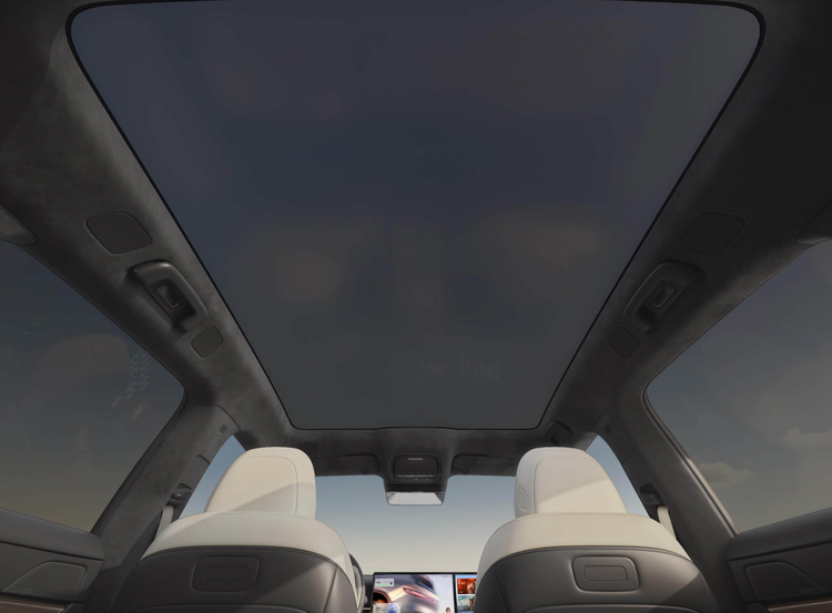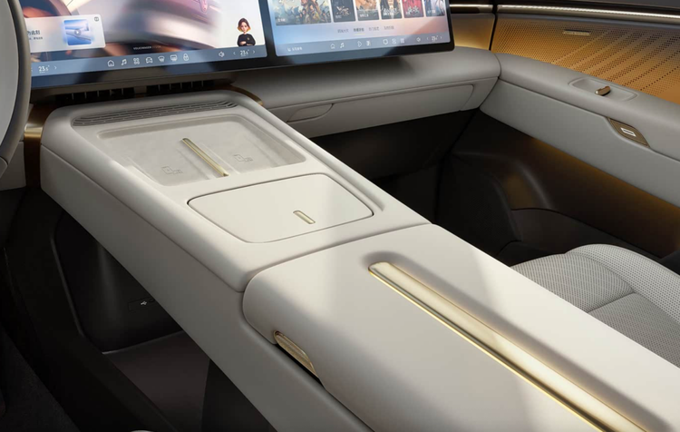 比较亮点的配置,包括可切换透光、磨砂暗态两种效果的1.74平方米智能调光天幕,可实现-5℃到+50℃的6.7L车载冷暖箱,全车亲肤环抱材质、Nappa真皮座椅+麂皮顶棚包覆,用材环保标准达到了婴儿级。