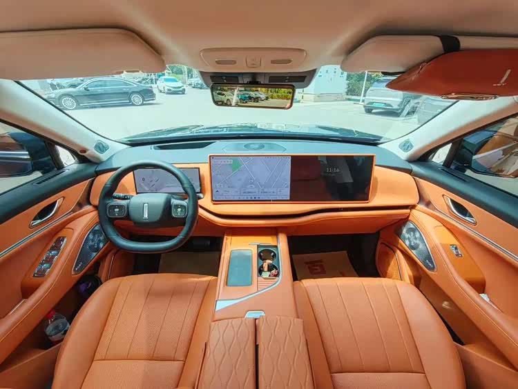 内饰用料很扎实,中控台和门板上大面积都是软质包裹,还搭配了木质纹理饰板,质感营造到位,提供墨玉黑、霞光橙、云朵白三种内饰配色。仪表盘是12.3英寸的2K全液晶仪表,中控屏是15.6英寸的大屏,搭配15.6英寸的副驾娱乐屏,组成双联屏布局,车机系统是Coffee OS 3.2智能操作系统,内置高通骁龙8295P芯片,还接入了Coffee GPT大模型,支持六音区语音控制,、5G网络、OTA升级、华为HiCar手机互联等功能。