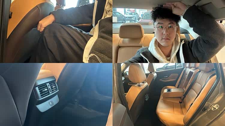 像我身高1米83,我把前排调到舒适的位置以后,我的二排腿部空间仍然有1拳,头部空间也有4指。