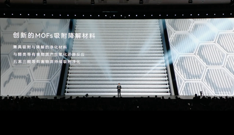 在健康座舱方面,智界双7同样树立新标杆。新车率先搭载鸿蒙ALPS健康座舱,核心材料采用了2025年诺贝尔化学奖所表彰的MOFs(金属有机框架)。这种拥有精准调控纳米级孔道结构的材料,能够高效吸附PM2.5、五苯三醛等有害物质,同时可将醛类等有害物分解为无害的水和二氧化碳,实现“吸附+降解”的净化闭环。配合MOFs抗菌滤芯与内饰材料,智界双7为用户打造出一个“会呼吸”的出行空间。
