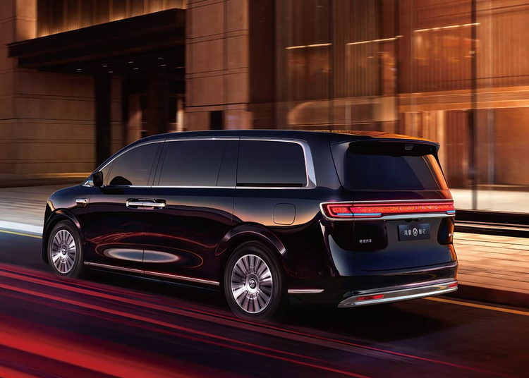 车身侧面是标准的MPV轮廓,线条平直流畅,旨在最大化地保障车内,尤其是第三排的乘坐体验。双侧电动滑门和隐藏式门把手是这类车型的常见配置,兼顾了便利性与整体感。其车身尺寸长宽高分别为5359/2009/1879mm,轴距达到了3250mm。车尾设计同样简洁,贯穿式尾灯与车头形成呼应,顶部设有尺寸可观的扰流板。