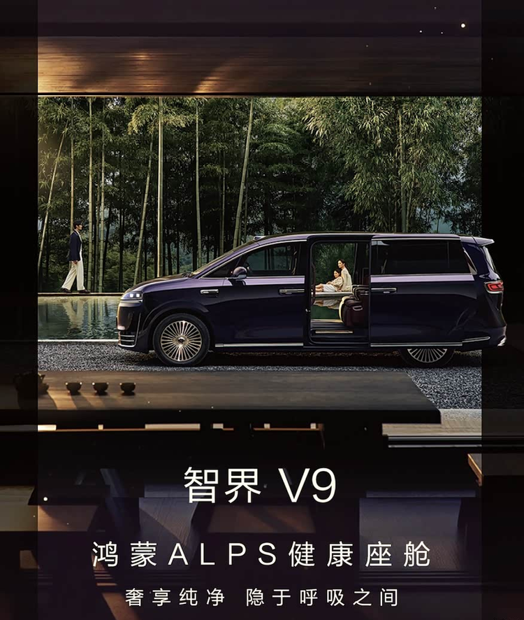 对于MPV至关重要的第二排,智界V9配备了被称为“伊姆斯躺椅”的独立座椅,支持一键调节至零重力姿态,并具备超长的腿托。此外,这两个座椅还支持旋转功能,能调整为面向车门的迎宾模式、侧向的观景模式乃至前后对坐的交流模式,拓展了使用场景。官方还强调了其“健康座舱”概念,通过多种空气净化技术来优化车内环境。