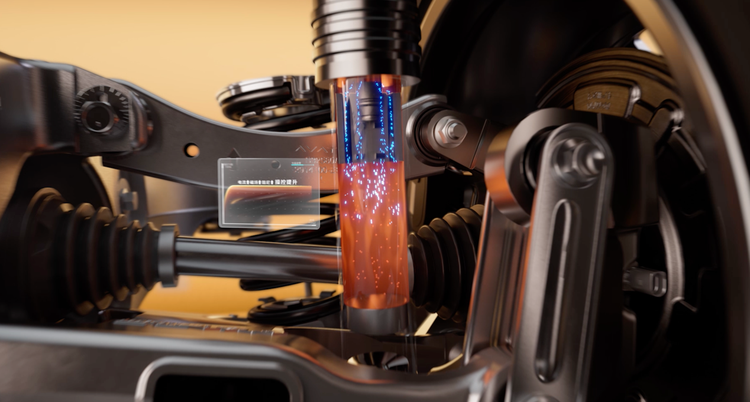 新的这套底盘两大技术亮点:太行分布式电驱、电磁避震。
