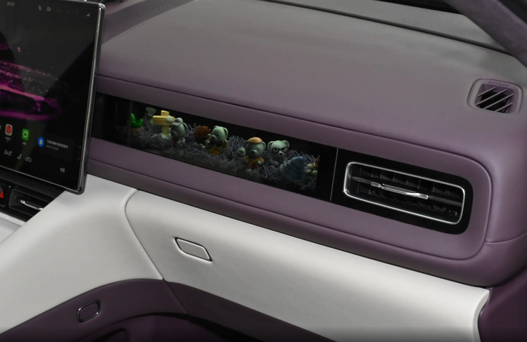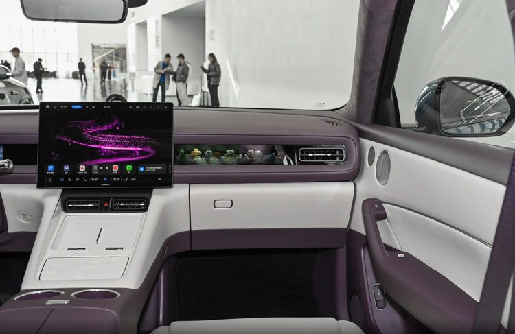 而这款车的内饰也做出了一些小的创新,能够感觉到设计师团队是挖空了心思,就比如台面布局这个课题,现在主流的方式就是简单的中控悬浮车机大屏幕,顶多是右侧再加上一个副驾驶的娱乐屏幕,但是问界M6直接搞出了新花样,副驾驶前方并非屏幕,而是挖了一个橱窗空间,这样可以加装一些类似小手办的装饰品。
