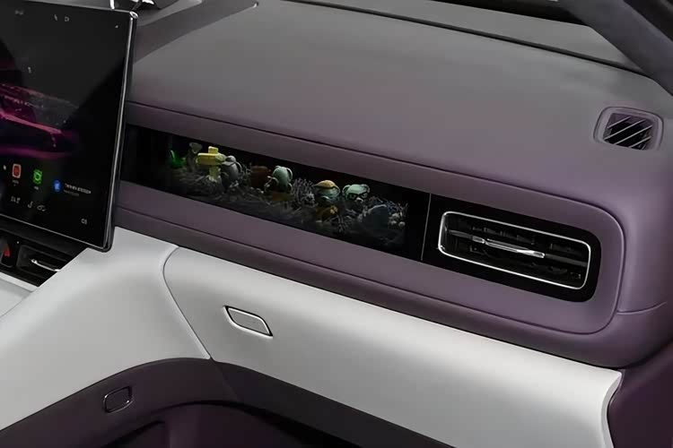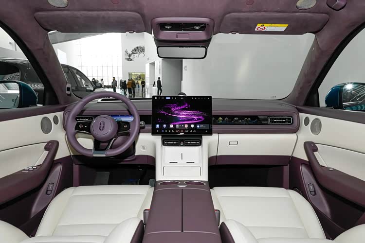 内饰部分是问界M6的核心升级点,新车采用官方定名的紫慕白双拼配色,整体座舱风格偏向简约轻奢,没有过度堆砌装饰件。车内最具特色的是大尺寸悬浮式中控屏,搭载官方专属的随动功能,可主动识别主驾、副驾或后排的语音指令发出者,并向对应位置偏转,从交互逻辑上优化了人车沟通的便捷性,也是当下智能座舱的差异化设计。副驾前方中控台设置了专属的“灵感橱窗”,支持用户根据自身喜好自定义场景布置,让座舱具备了个性化改造的空间。