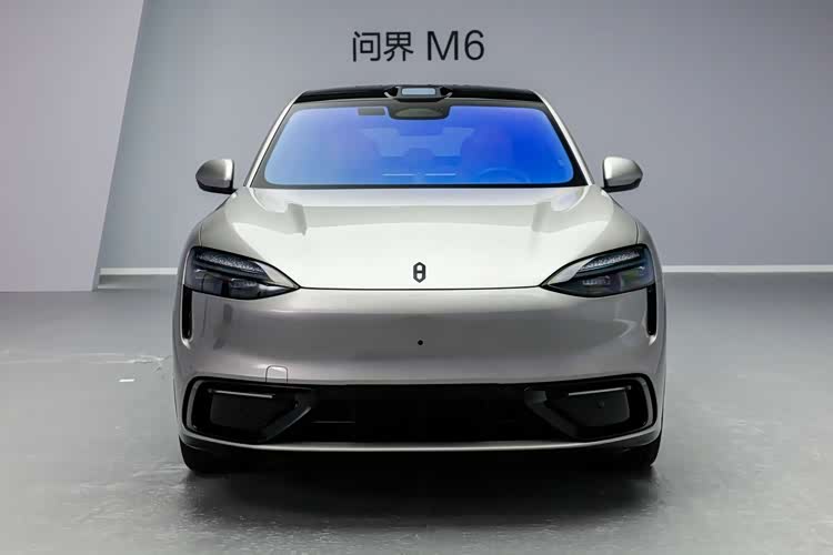 外观设计延续问界家族式轮廓,没有大幅改动经典设计语言。前脸配备细长造型的前灯组,车顶搭载激光雷达,前包围两侧设有辅助驾驶小蓝灯,智能硬件的布局兼顾实用性与美观度。车身侧面采用半隐藏式车门把手,能有效优化整车风阻系数,车型提供两种外观套件:一款配备亮面轮辋,轮眉、侧窗边缘辅以镀铬饰条,偏向精致家用风格;另一款为黑色轮辋搭配红色刹车卡钳,轮眉等部位改用亮黑色饰条,运动感更突出。
