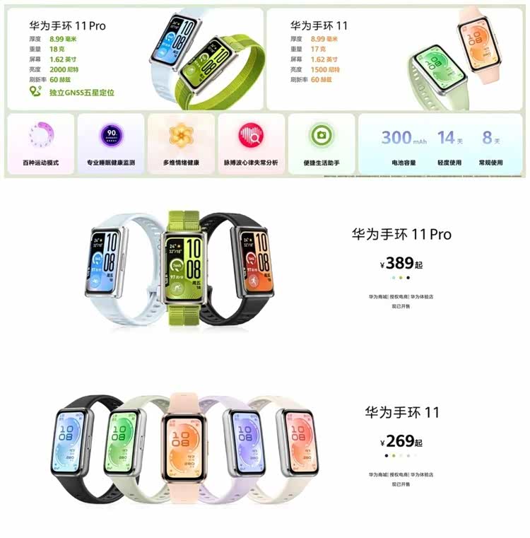 华为手环 11系列首发价269元起,现已开售。用户可前往华为商城、华为授权电商及华为体验店购买。