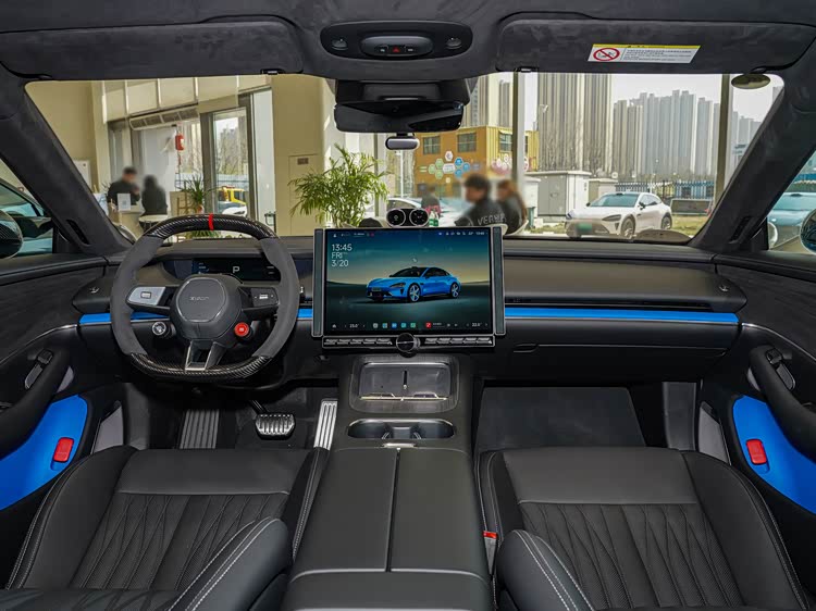 最后是顶配的Max版,指导价30.39万元,相比Pro版高出5.4万元,主打性能与豪华体验。它同样采用1445mm的车身高度,轮毂除了可选装20英寸梅花轮毂或锋刃轮毂外,还能选择21英寸双层锻造轮毂搭配倍耐力运动胎,同时可选装卡布里蓝特别版配置,个性化更突出。内饰配备Nappa真皮座椅+绗缝工艺,标配25扬声器豪华音响系统,副驾配备零重力座椅,后排座椅躺倒角度提升至121°并升级舒适睡眠头枕,同时标配双分区智能调光天幕,可选装超静谧座舱和独立压缩机版车载智能冰箱,此外还标配电动方向盘调节与记忆功能,配备Brembo四活塞固定卡钳,制动性能更出色。动力上采用前后双电机四驱布局,综合最大功率508kW,搭载101.7kWh三元锂电池,CLTC续航835km,最大充电倍率达5.2C,10%-80%最快充电时间仅12分钟,15分钟最长补能里程可达670km,底盘同样配备闭式双腔空气弹簧和CDC阻尼可变减振器,调校更偏运动。这款车型适合对价格不敏感,追求极致性能、豪华配置和驾驶体验,喜欢个性化,注重全方位舒适感受的人群。