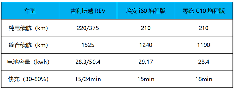 同级别比如埃安i60增程版搭载一台29.17kWh电池,CLTC纯电续航210km,综合续航1240km,比吉利博越REV高一个级别的零跑C10增程版,综合续航也只不过1190km。素以增程车标杆产品的理想L6电池包仅为36.8kWh。这也让吉利博越REV敢打出“长续航增程平权时代”的口号,效果是看得见的。