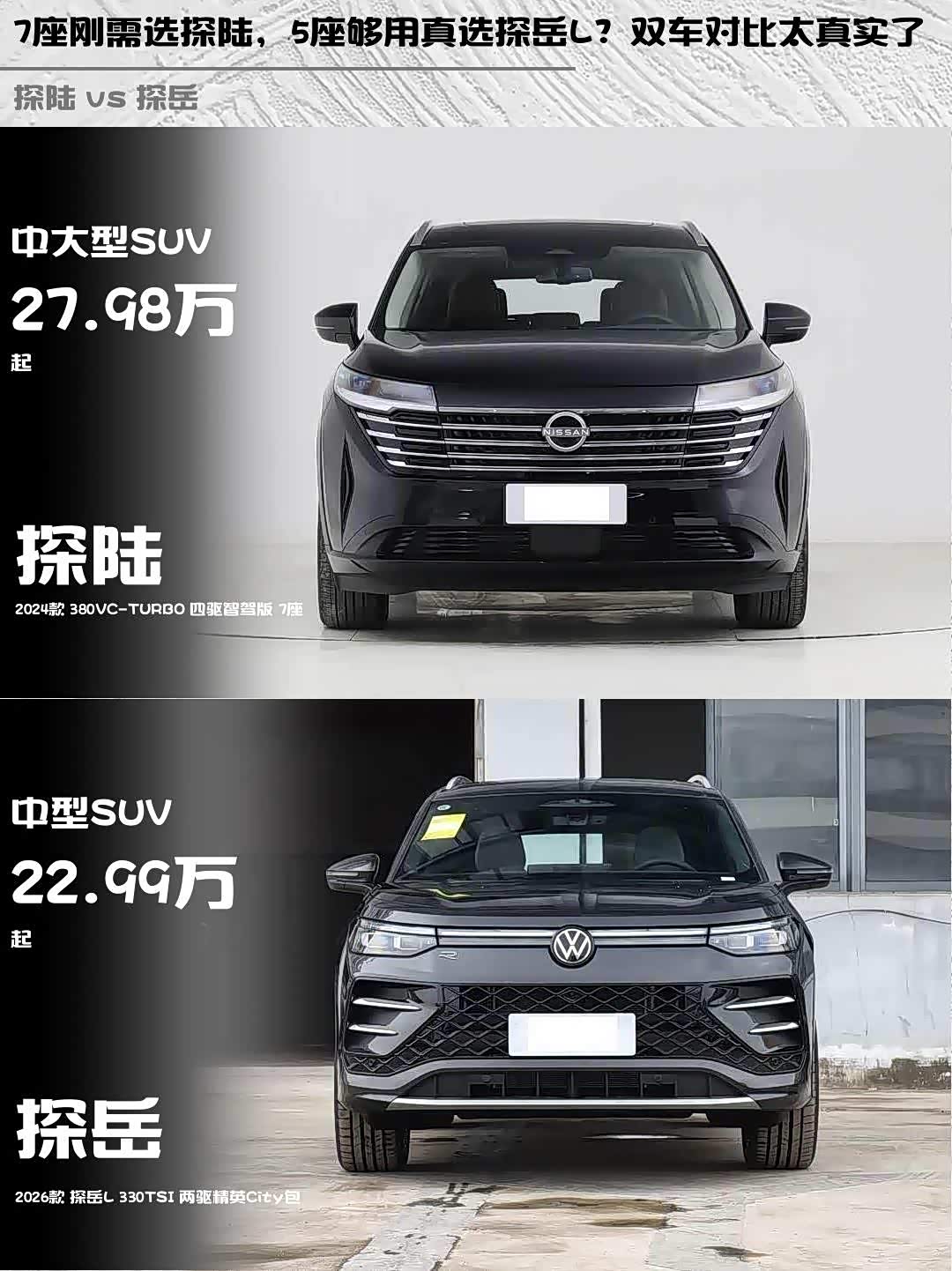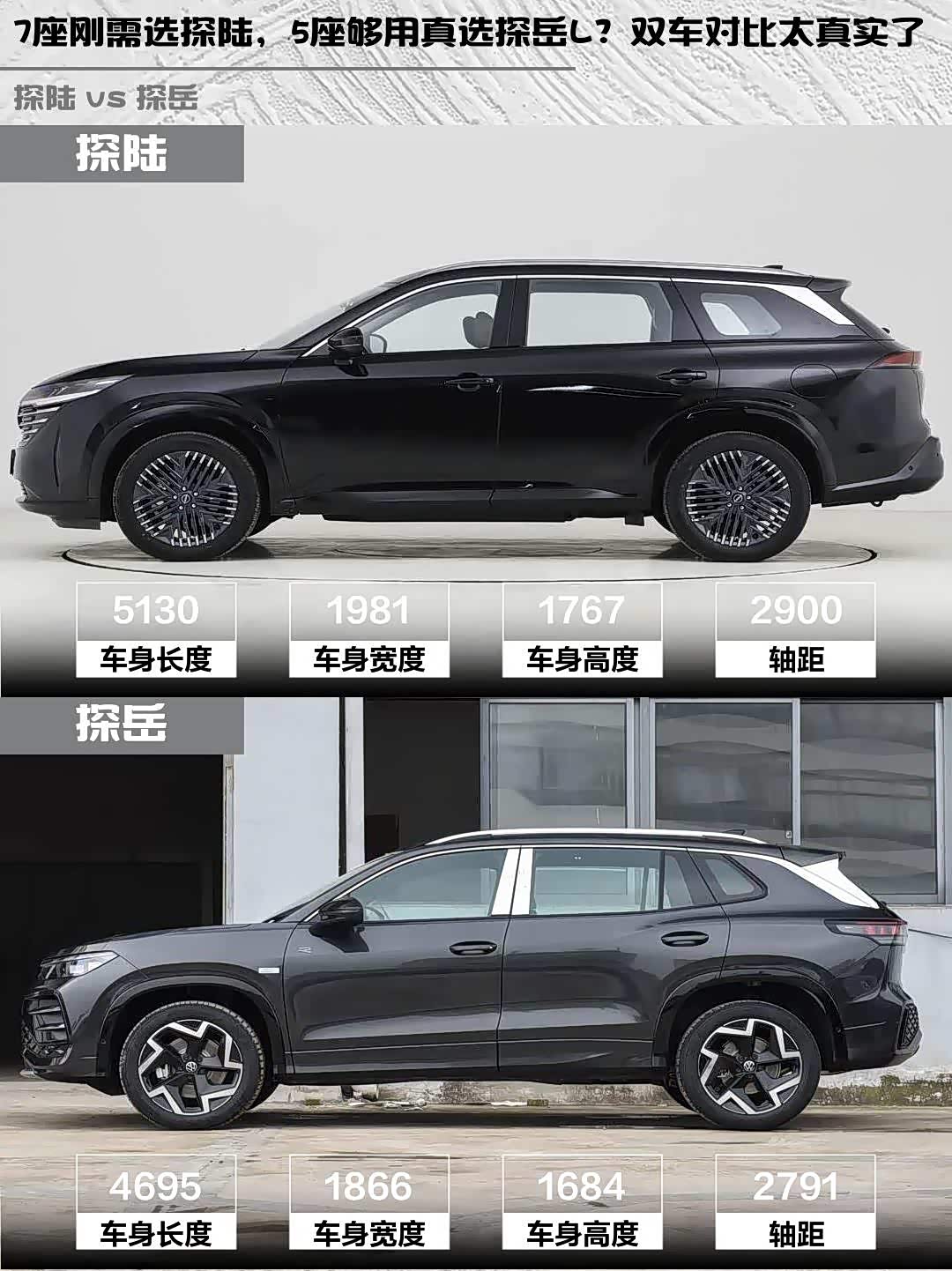 最后说句大实话:7座刚需选探陆,5座够用选探岳L。毕竟"大块头有大智慧,小身板有巧心思",两台车在各自细分市场都是实力派选手。建议带着家人去试驾,第二排坐满人跑个高架桥,立马就知道谁是真爱了~