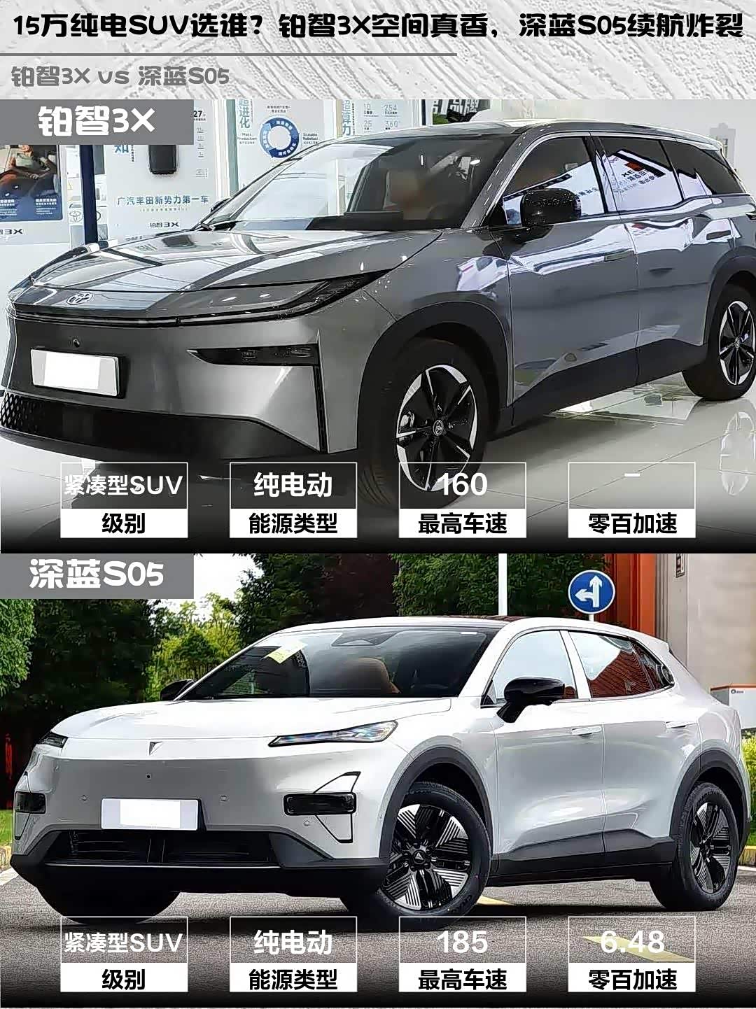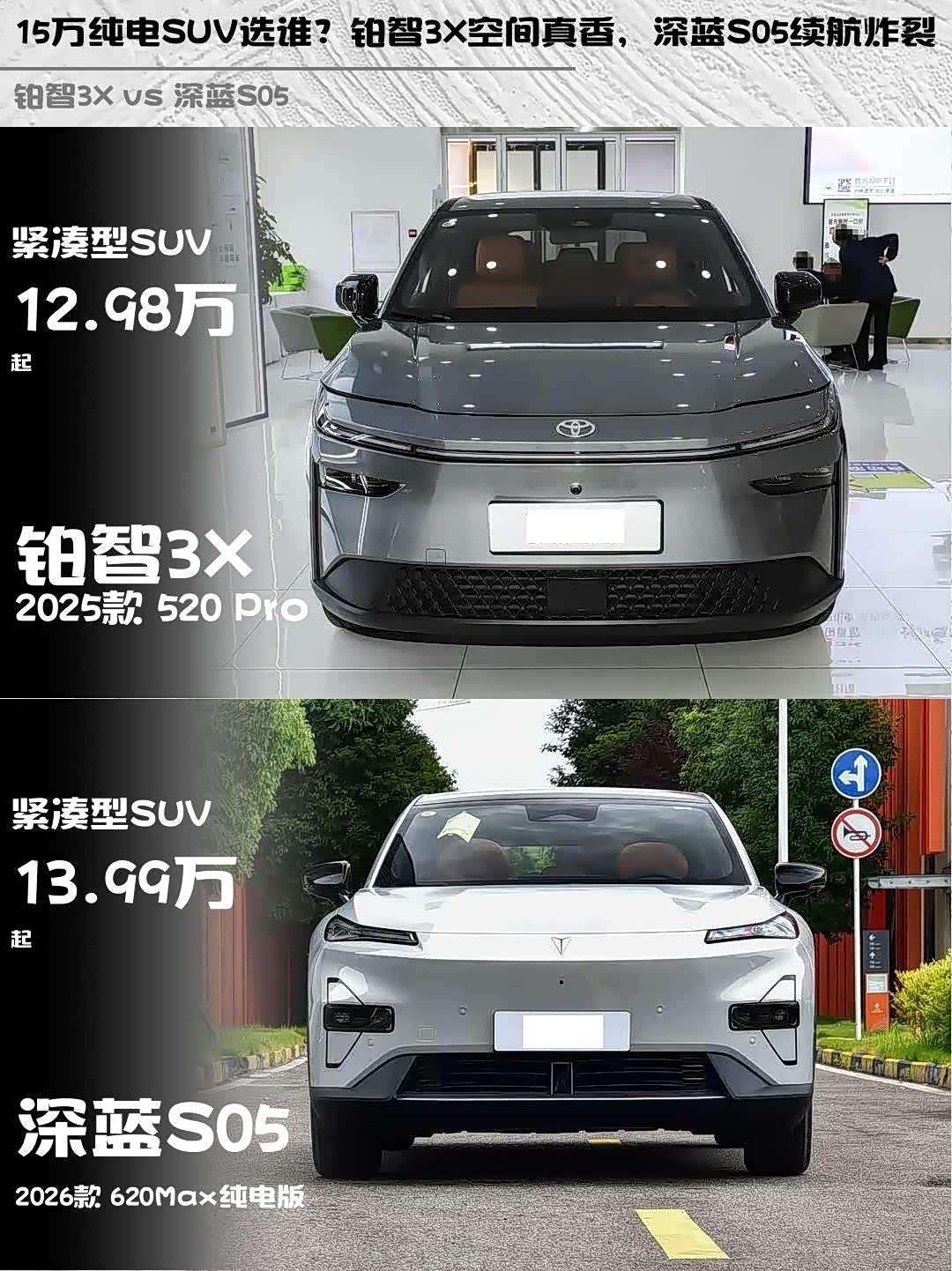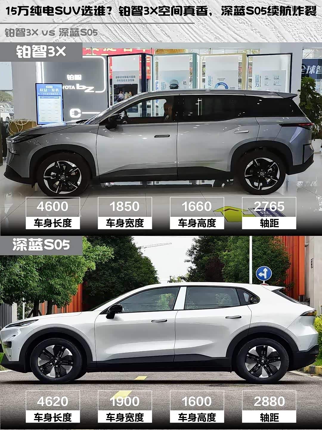 15万级纯电SUV怎么选?铂智3X 520 Pro和 深蓝S05(参数|询价) 620Max纯电版实测对比来啦!🚗