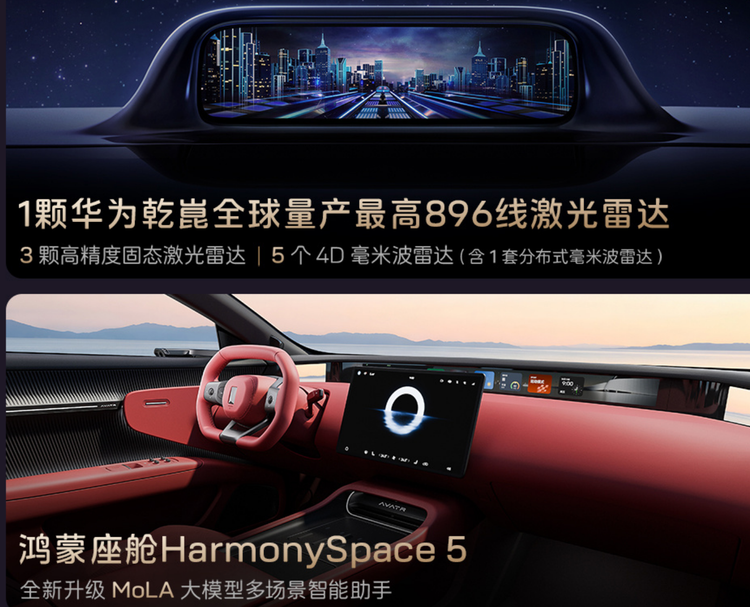 全新 阿维塔12(参数|询价)在3月20日开启预售,预售价29.99-43.99万元,新车外观造型变化不大,车顶配备全新激光雷达,配备的是华为全新896线双光路图像级激光雷达,整车配备4激光雷达方案,匹配华为乾崑ADS 4高阶智驾系统,智驾表现更加出色。