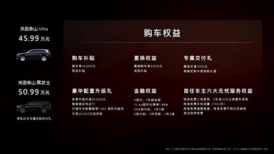 与此同时,官方还推出了多项购车权益。其中包括购车享10,000元现金补贴、置换购车享5,000元现金补贴、赠送价值1000元高端定制木质钥匙礼盒、免费升级价值20,000元智能感应电动门、0首付,7年超低息等等(详情请咨询当地经销商)。