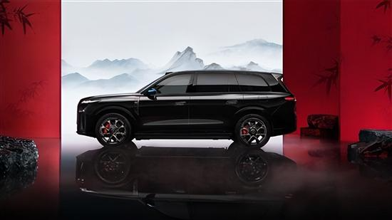 车身侧面,新车采用22英寸天地星芒轮毂,搭配醒目的红色制动卡钳,在全黑底色中注入一抹运动亮色,视觉冲击力拉满。与此同时,外后视镜装饰罩、车窗饰条、侧裙等细节均采用黑化处理。