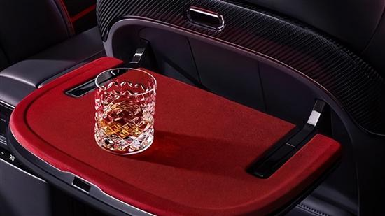内饰方面,新车以丹墨黑红撞色设计为基调,将东方美学、运动质感与科技配置完美融合。仪表台、方向盘、前排座椅背板等位置大面积使用碳纤维材质,大幅提升运动气质。车门与中控区域搭配流云墨韵中式饰板,将东方美学与现代运动风格巧妙融合,打破了传统豪华内饰的沉闷感;座椅头枕带有手工刺绣标识,细节处彰显定制身份,第二排小桌板还使用红色绒面材质包覆,进一步提升豪华感。