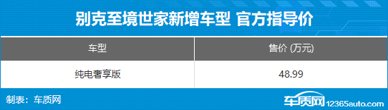 2026年3月17日,上汽通用别克官方宣布,别克至境世家纯电版正式上市,共推出1款车型,官方指导价48.99万元。此外,购车可享价值62,000元的限时臻享礼遇,包括智行礼、质保礼、置换礼、金融礼、无忧礼。
