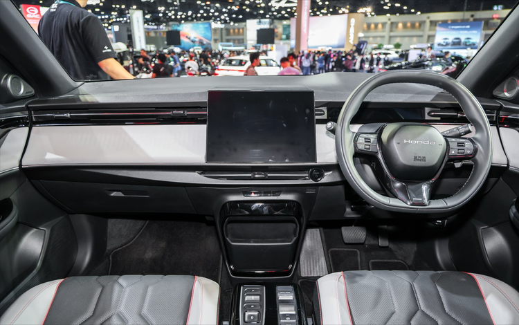内饰部分,e:N2的座舱氛围较e:N1更偏未来导向,但相比中国品牌竞品仍属相对保守。车内配备9.4寸细长型数位仪表、12.8寸横置中控触控屏(搭载本田Connect 4.0系统)以及11.5寸抬头显示器。内饰采用灰黑双色搭配,并在门板与中控台加入横向橙色饰条点缀,提升视觉层次感。