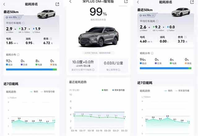 对于必须用油的场景比亚迪也给出了答案,OTA后百公里2.6L油耗,加油也不心疼。即便跑长途需要烧油,比亚迪插混同样底气十足。第五代DM技术通过OTA升级,百公里亏电油耗已优化至2.6L,再创全球插混油耗新低。这意味着,即使在亏电状态下行驶,每公里油费成本也仅0.23元左右。