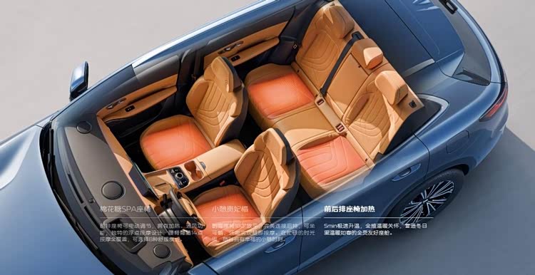 座舱舒享配置全面兼顾每一位乘员,前排10层棉花糖SPA座椅配备14点腰背臀腿按摩功能,8种舒缓模式可自由切换,搭配三档加热与通风功能,四季乘坐都舒适,长途驾驶也能有效缓解疲劳。新增方向盘三档加热与后排座椅加热,-18℃低温环境下15分钟即可升温至舒适区间,老人孩子乘车再也不惧寒冷。