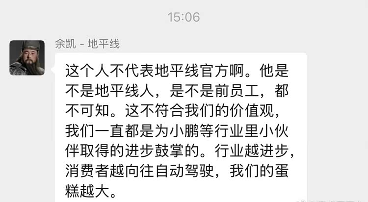 简单说,就是在质疑小鹏的智驾能力,甚至是怀疑展示出来的视频,有后期美化的嫌疑。地平线创始人余凯在一微信群中对此进行了回应。余凯说“这个人不代表地平线官方啊。他是不是地平线人,是不是前员工,都不可知。这不符合我们的价值观,我们一直都是为小鹏等行业里小伙伴取得的进步鼓掌的。行业越进步,消费者越向往自动驾驶,我们的蛋糕越大。