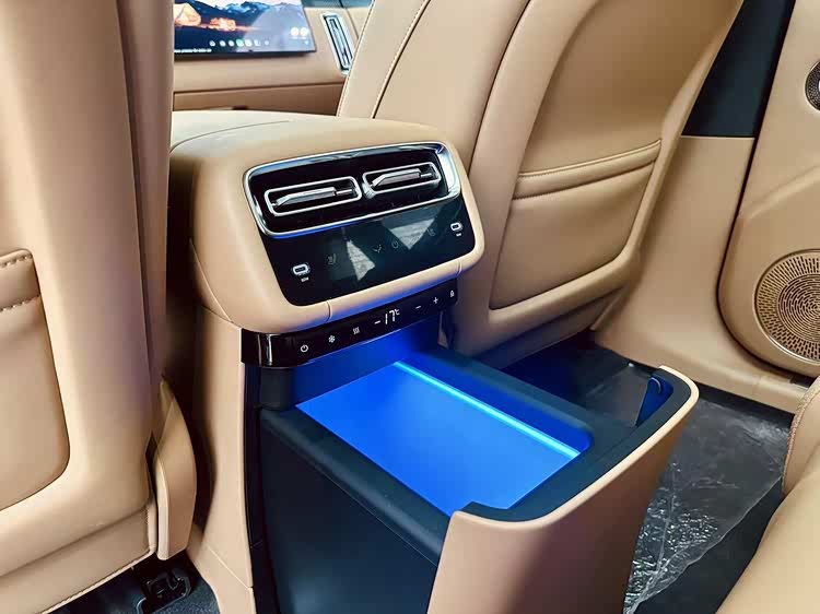 车内采用大五座布局,全车四座椅均配备电调节、通风、加热以及按摩功能,再配合23扬伯牙之音音响系统、9.2L智能冷暖冰箱、全景天幕+电动遮阳帘、后排扩展接口等,保持乘坐舒适性。同时前排放平可形成“双大床模式”,二排放倒后也能进一步提升实用空间,后备厢还有下沉空间。