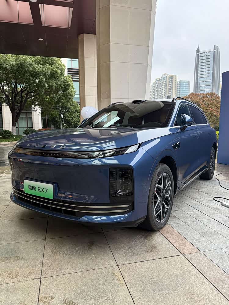 看到小米YU7、问界M7、理想L6/L7等中大型SUV的持续热销,奇瑞也不甘落后,于是 星途EX7(参数|询价)应运而生。新车提供增程、纯电可选,前者双电机可达513马力、综合续航超1500km,后者采用800V平台,此外还将配备激光雷达+猎鹰700、AI灵犀智舱2.0、飞鱼底盘3.0、航空级EMB线控制动、双联屏、冰箱……日前,已有网友拍到了星途EX7的实车到店图,下面我们就来了解一下。