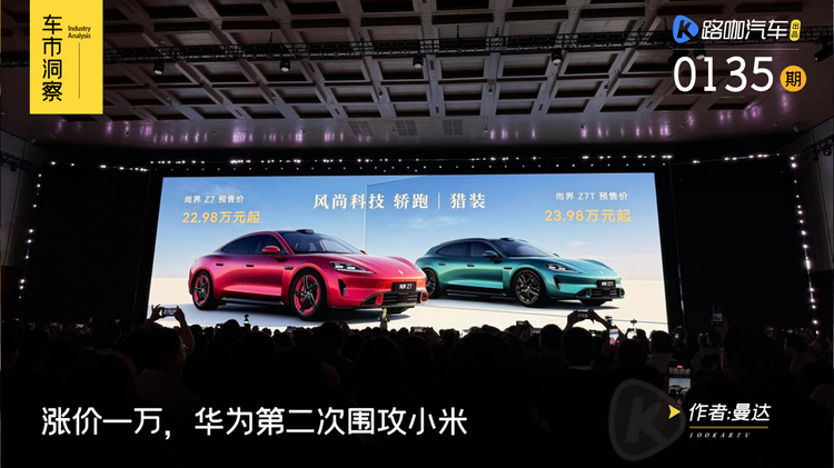 从尚界Z7/Z7T预售的价格看,华为明显把枪口对向了新一代小米SU7。22.98/23.98万元起的尚界Z7,搭上了华为“全家桶”。而新SU7标准版21.99万元起,小幅上探4000元后,把此前高配才有的关键硬件与能力做成了“入门即有”。