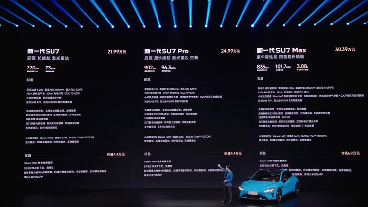 雷军在新一代SU7发布会后接受采访时称,虽然新车外观没有大的变化,但三电、底盘、内饰等方面都进行了升级。拿标准版来说,小米SU7升级的地方超过了100多项,光材料成本就增长了小2万元。他透露,“因为购置税退坡以后,我们不想让新的车主觉得买一辆新SU7超出了他的预算,所以全系只加了4000元。”